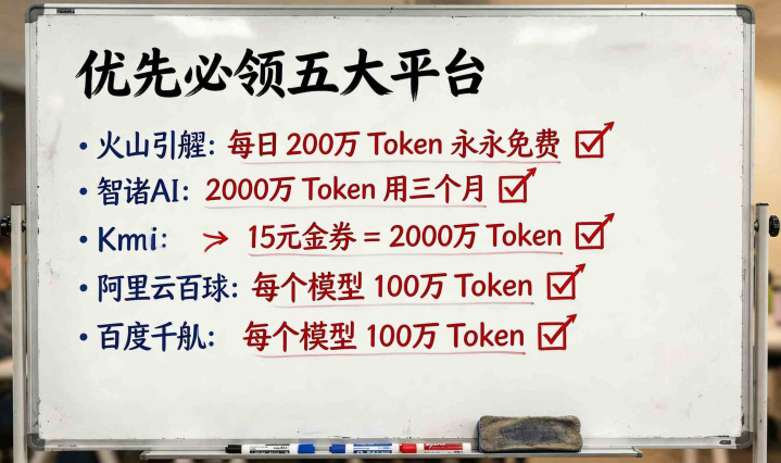 竟然,我作念互联网这样多年,从没见过这样的方位。放在三年前,你敢思?各大厂商拼了命给你送免费额度——火山引擎每天送200万,智谱径直给你2000万用三个月,Kimi送你15块钱代金券差未几亦然2000万,阿里云、百度、硅基流动全随着送。