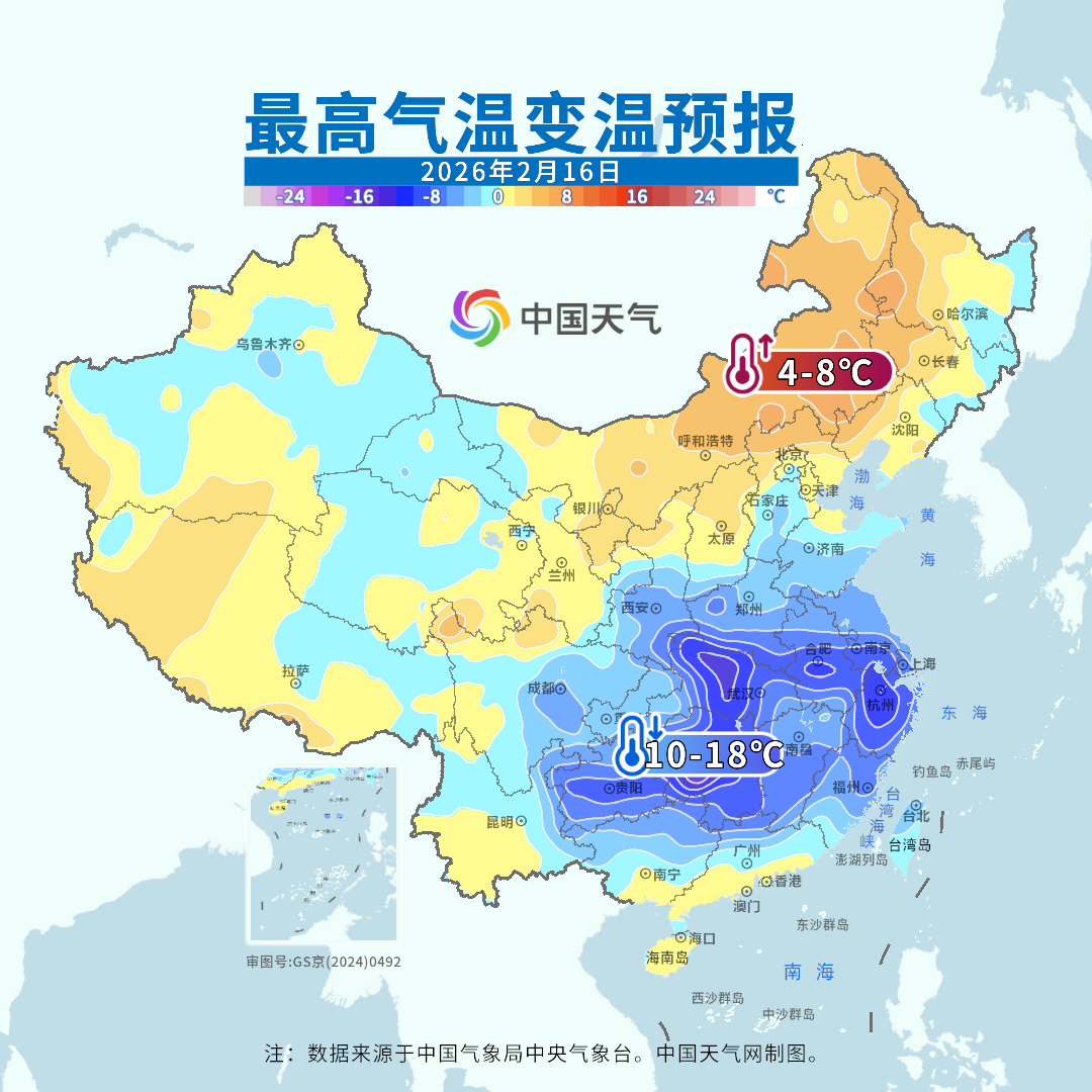 15-16日,亦然春节假期头两天,中东部将插足降温主要时段。15日,降温将涉及长江以北大部地区,16日,降温中枢区域将激动到南边。